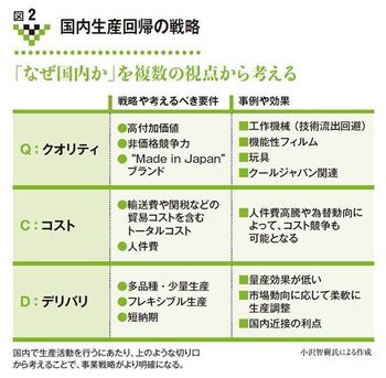 国内生産回帰を含め、生産拠点の展開で小沢氏が勧めるのは、「Q・C・D」の切り口から考えることである。Qはクオリティ、Cはコスト、Dはデリバリだ(図2参照)。