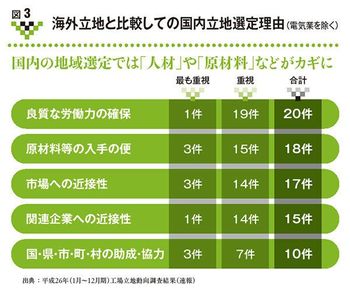 海外からの回帰ではないにせよ、国内で新工場を作る前に、海外立地との比較検討を行う企業もある。冒頭で触れた「工場立地動向調査」は、最終的に国内立地を選択した理由を紹介している(図3)。その上位は、「良質な労働力の確保」「原材料等の入手の便」「市場への近接性」「関連企業への近接性」だった(複数回答)。