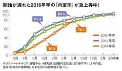 開始が遅れた2016年卒の「内定率」が急上昇中!