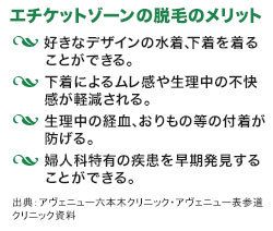 夏にハイレグビキニを着たい、Tバックをはきたい、若い恋人ができたら恥ずかしい、という若い女子の気持ちはわかる。しかし、先生は「下半身脱毛は、年配の女性に最近人気です」ときっぱり。