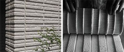 [写真右]ハンドメードの温もりと味わいのある外壁材「ダインコンクリート」。職人の手で制作された原型から型枠をつくり、オーダーメードで生み出される。