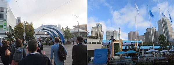 同社のDreamforceイベントを「お祭り」と形容する人がいるが、これはかなり正しい。Dreamforceは数あるIT系イベントの中でも参加者数が群を抜いており、今年は登録だけで17万人近く。もちろん最大規模だ。会期中、サンフランシスコの街は企業カラーの水色に染まる。メイン会場に近いハワード通りは閉鎖され参加者のイベントスペースと化す。