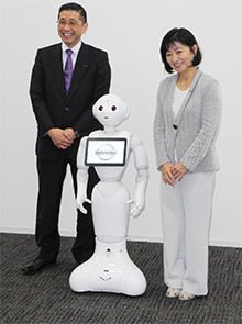 西川廣人CCO(左)、Pepper、星野朝子専務執行役員(右)