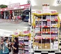 福岡で訪日中国人の団体客を集めるドラッグストア「ドラッグオン」を訪ねた。店構えは一般的な郊外型のドラッグストアと変わりはない。ただ、駐車場に観光バスが並んでいることから、普通の店ではないとうかがい知れる。