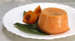 柿プリン:熟柿と牛乳を泡だて器で混ぜ、冷やして作ったデザート。