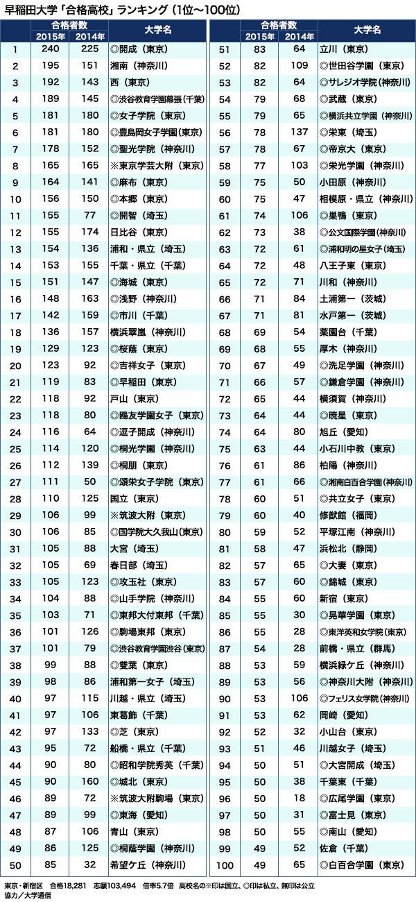 2016年「間違いだらけの大学選び」 #大学 #受験 2015/11/24 10:00 #1 #2 #3 志願者10万人「早大合格ランキング」強い中高一貫校と逆襲する公立校 PRESIDENT Online 安田 賢治 +フォロー 大学通信 常務取締役 前ページ 1 2 3 4 次ページ 次ページ 1 2 3 4 関連記事 「志願者数ランキング」近畿大2年連続トップ! 明大、早大が絶対勝てない理由 法科大学院全74校「司法試験」合格ランキング 「クビになりやすい業種・会社」ランキング100 ランキング 1位 1回10分・室内でもできる…整形外科医が「姿勢も血流もよくなる」と勧める"肋骨ウォーキング"の効果【2026年1月BEST】 ランキングをもっと見る キャリア #大学 #受験 #早稲田大学 #開成学園 #中高一貫校