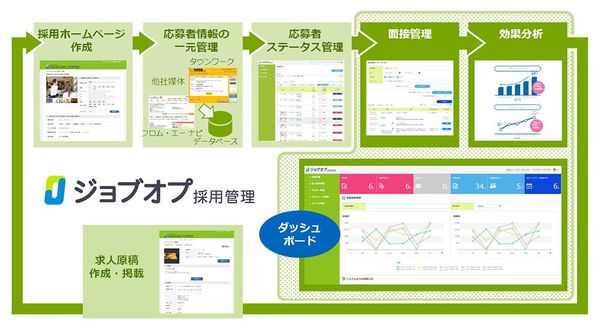 「『ジョブオプ採用管理』は、様々な求人メディアを一元管理できます。これまでは、求人メディアごとにIDやパスワードを入れて、それぞれのサイトにログイン。別々に管理する必要がありました。しかしこのツールでは、1つのシステムでさまざまな求人メディアを一括に管理できるので、担当者の手間が削減されます。また、採用状況をダッシュボード上から一目で把握でき、未対応応募も把握しやすく、連絡のし忘れといったミスを防ぐことが可能になります」(同)