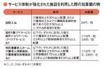 今改定で特徴的なのは、各サービスにさまざまな加算が設定された点だろう。加算とは、サービスを利用したときにかかる「基本費用」に、上乗せして請求されるもの。希望に応じて利用する特別なサービスや、事業所(介護施設も含む)の体制などに応じてかかる費用だ。