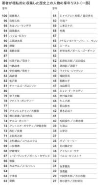 歴史上の偉人のほか、作家やプロレスやプロ野球を含むスポーツ選手、内外の個性派俳優などの名前も(歴史上の人物は推定の享年)