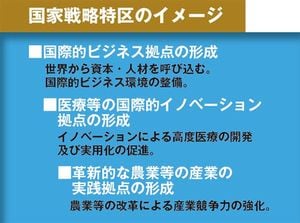 その後、「国際戦略総合特区」「地域活性化総合特区」が整備され、現在国が注力しているのが、「国家戦略特区」だ。これまでは、まず地域がアイデアを出し、それを国が認める流れだったが、国家戦略特区では“国が自ら主導して”大胆な規制改革を実現していく形となった。