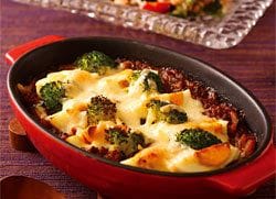 ゆで卵とブロッコリーのパンプキンミートグラタン