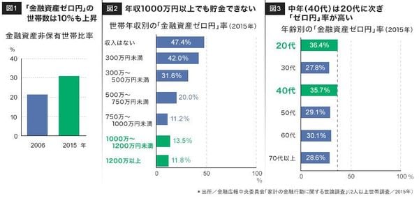 前回の記事で触れたAさん(45歳・都内の上場企業勤務)は、1000万円の金融資産を持っていたものの、がん治療・再発などにより数年で底をついてしまった。資産があっても破綻したのだ。ところが、40代、50代のなかには、子どもの教育費や住宅ローンの負担から、十分な貯蓄ができていない家計も少なくない。