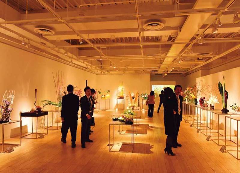都内で開かれた「ビジネスリーダーたちのいけばな展」。