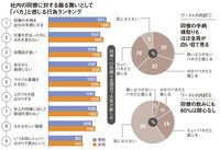 2位は「仕事を手伝ったのにお礼を言わない」。これは雇用形態の多様化や職務分掌の細分化が理由だろう。いまの職場では、「あなたにはこの条件でこの仕事をしてもらいます」ときっちり決まっていることが多い。皆が同じ条件で働いていた頃のように、「手伝ってもらうのは当たり前」という態度は通じなくなっている。感謝の表現が重視されるゆえんだ。