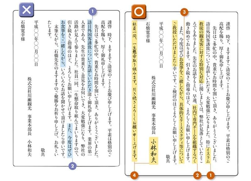 例文集からそのまま抜き出したようなお礼状は、なんの印象にも残らない。印象に残るお礼状にするには、具体性が重要だ。感謝しているなら、どんなことに感謝しているのか、話を聞いて感動したというなら、どの話にどのように感動したのか、できるだけ具体的に書くのだ。
