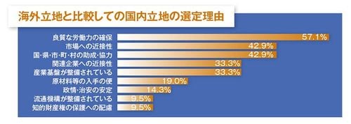 経済産業省の工場立地動向調査でも、海外と比較検討し国内立地を決めた理由として、労働力の質はトップを占めている(下図参照)。