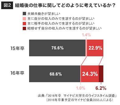 大学で教鞭を取っている方に伺うと、最近、「将来は、母と同じように専業主婦になりたい」と答える女子学生が多いという(図2参照)。