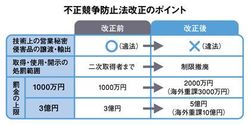 営業秘密を保護する不正競争防止法が改正され、2016年1月1日から施行された。改正内容は多岐にわたるが、影響が大きいのは、営業秘密のうち製造技術上の秘密を使ってつくられたものを、第三者が譲渡したり輸出入したりする行為が禁じられたことだ。