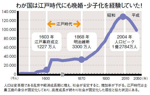 ──江戸時代は夜這いの風習や春画からの連想で性に開放的だったと思われているが、晩婚で出生率が低かった。