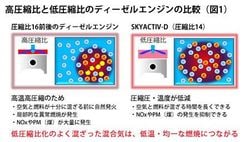 高圧縮比と低圧縮比のディーゼルエンジンの比較(図1)
