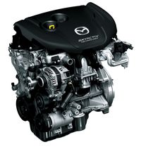 ディーゼルエンジンを燃焼させるには、点火プラグを使うガソリンエンジンと違い、シリンダー内の混合気を圧縮し燃料(軽油)自体に自己着火を起こさせる必要がある。圧縮比が低すぎると自己着火しないため、マツダのエンジニアは自己着火しない圧縮比の下限を探った。その結果、製品化可能な数字は14と決めた。