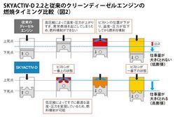 SKYACTIV-D 2.2と従来のクリーンディーゼルエンジンの燃焼タイミング比較(図2)