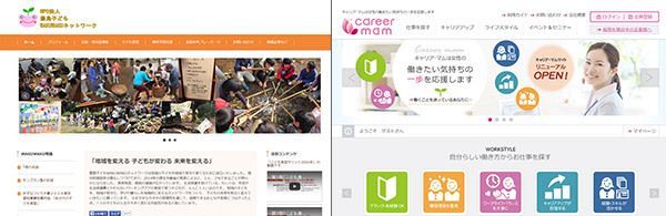 豊島子どもWAKUWAKUネットワークでは、子ども食堂で1食300円の食事を提供したり、自由に遊べる場所を提供したりといった、地域で困っている子どもたちを助ける活動を行っている(左)/キャリア・マムでは、働きたい女性たちのために在宅でできる仕事を紹介。主に結婚や出産を機にキャリアが途絶えてしまった女性たちを支援している(右)