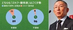 (左)どちらも「ゴルフ・接待派」はごく少数(右)ファーストリテイリング会長兼社長 柳井 正(時事通信フォト=写真)