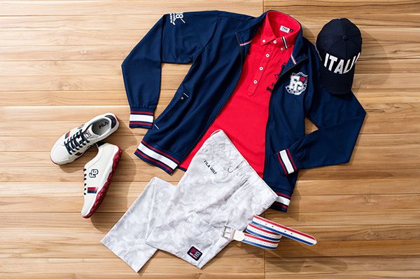 パンツは「FLAG TEE」モチーフをアレンジしたオリジナルのカモフラージュ柄。FILA GOLFのほぼすべてのウエアには、汗を素早く吸収して生地表面で拡散する吸汗速乾機能と、有害な紫外線をカットするUVカット加工が施されているが、特にパンツについてはプレー時に役立つさまざまな機能が盛り込まれており注目だ。