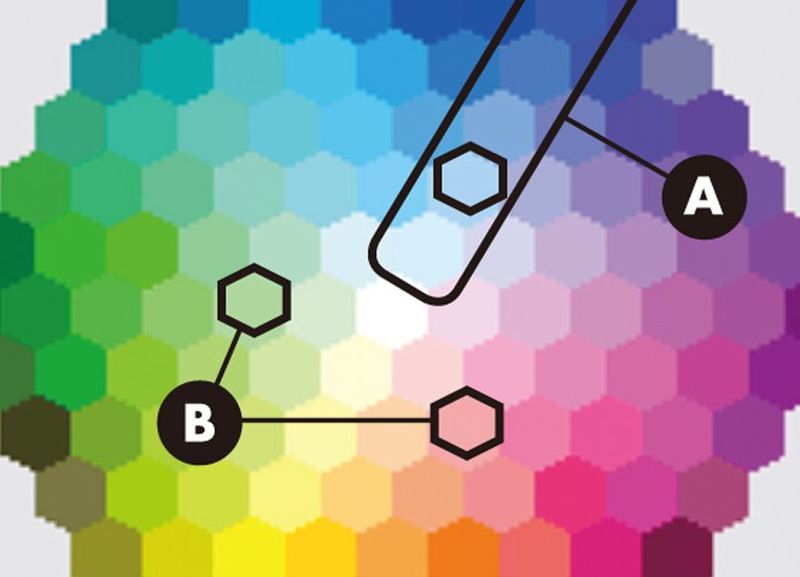 色数は最多で5色までに抑えること。基本色のグラデーションを使い色数を限定します(図を参照)。カラーパレットを使えば、見栄えよく実現できます。ビジネス文書なら寒色系がベター。落ち着いたイメージを演出できます。