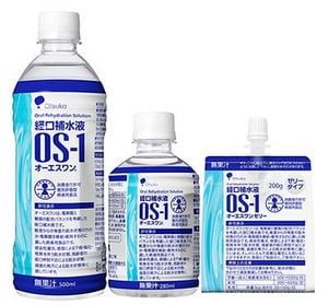 OS-1は、軽度から中等度の脱水状態の人体に対して、水や電解質を補給・維持するのに適した病者用食品。具体的には、感染症腸炎、感冒による下痢・嘔吐・発熱を伴う脱水状態、高齢者の経口摂取不足による脱水状態、過度の発汗による脱水状態等に適している。