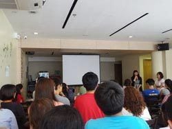 なお、毎週金曜日の午後にはプレゼン大会が行われ、生徒、講師を合わせて60名程度の前でマイクを使ってプレゼンをする機会がある。参加は任意であるが、それぞれのレベルで多くの人がチャレンジする。こうした舞台が用意されていることも、この学校の姿勢が表れているのだと思う。