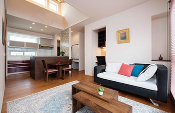 S氏がこだわったのがガレージと茶室なら、S夫人のこだわりを実現したのが2階LDKだ。これまでの同社標準仕様の天井より30センチ以上高い、天井高2メートル72センチのゆったりした空間は「xevoΣ」の大きな特徴。加えて、暗くなりがちな中央部に吹き抜けとハイサイドライトを設け、伸びやかさと明るさを演出している。