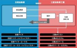 発覚のきっかけは、日産からの問い合わせだ。三菱は現在、軽自動車の開発について日産との間で合弁会社NMKV社を設立しており、三菱と日産で販売する軽乗用車は実質的に三菱が設計生産を行っている(日産の軽商用車はスズキのOEM)。
