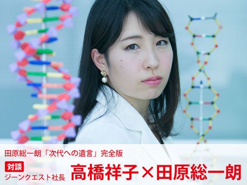 京都大学農学部を卒業後、東京大学大学院へ進んだ高橋さんは、糖尿病など生活習慣病の予防メカニズムを遺伝子解析によって明らかにする研究に従事し、それがジーンクエストの遺伝子解析サービスにつながった。生命科学の博士号を持つ28歳、高橋祥子さんの夢とは? 田原総一朗氏との対談、完全版を掲載します。