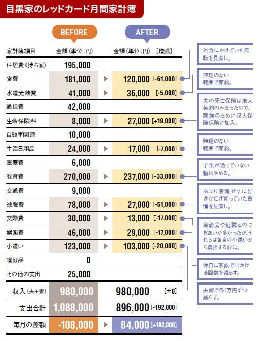 ▼目黒家のレッドカード月間家計簿[年収:1500万円]