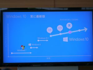 外向きの理由としては、「ユーザーの利益」が考えられる。マイクロソフトは“Windows as a Service”という考え方を打ち出し、これまでのように3年に1回のメジャーアップグレードで機能を進化させるという手法から、最新機能を随時提供する仕組みへと転換する姿勢を見せている。そして、Windows 10は最後のメジャーバージョンアップと言われており、今後の機能強化はこれをベースに行われることになる。つまり「無償でWindows 10に上げておけば、今後、常に最新の機能の提供が行われる環境へと移行できますよ」という提案である。