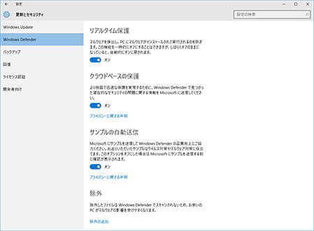 セキュリティソフトが無料というと、何かウラがあるかと勘ぐりがちですが、その点は安心して大丈夫そう。「実はマイクロソフト社内でも、Windows Defenderを使っています」(浅田さん) 最新のウイルス定義ファイルが適用されていない場合でも不審なプログラムの実行を防止する「クラウドベースの保護」など、機能面でも相当充実しています。
