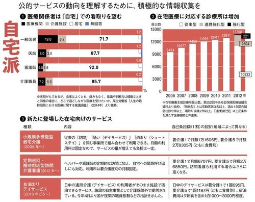 また医療も在宅で受けられる。08年までに制度ができた「在宅療養支援診療所・病院」では、24時間体制で訪問診療や訪問看護ができる態勢が確保されている。医師や看護師による在宅の看取りも増えている。