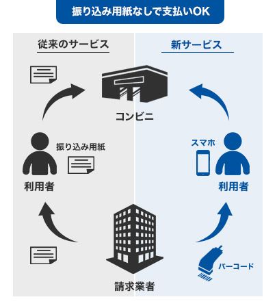 サービスを利用すると、バーコードが印字された支払表などの紙をコンビニに持参する必要がない。スマホにインストールしたアプリを使って表示されるバーコードを提示し、これを店員がレジのスキャナーで読み取ることで現金支払いが可能となる。スキャナーは既存のものでOKでレジについては新しい投資は不要という。