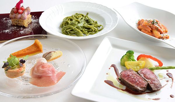 個室でイタリアンを希望する向きは、バーラウンジを挟んで反対側のサロット「カンティコ」に4室の個室がある。カンティコのランチコースは、一口前菜、前菜、プリモピアット2皿、肉料理、ドルチェで6500円。時間に余裕がない方や小食の方のために、ショートコースの3皿コース(前菜、プリモピアット、ドルチェ、カフェ)3800円と、4皿コース(前菜、プリモピアット、肉料理、ドルチェ、カフェ)4500円の2種がある。