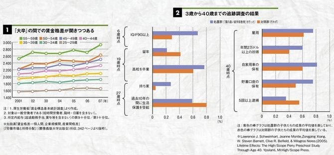 子供が成人しても無職のままだったら――。3年前、総務省は35~44歳の男女のうち「未婚のまま親と同居する人口」が295万人にのぼり、当該年齢帯の6人に1人に相当すると発表した。彼らは低学歴に限られるわけではない。近年、大卒者と高卒者の賃金格差は縮小しているが、その一方で「大卒者間」の賃金格差が拡大している(図1)。子供の将来を左右するのは、学歴だけではなく、いわゆる「生きる力」だ。これを養うにはどうすればいいのか。