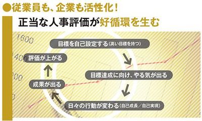 自己設定した目標に基づき、成果が正当に評価される制度を導入することで、社員の行動が変化する。そうした好循環を生み出すことで、会社の業績をアップすることができる。