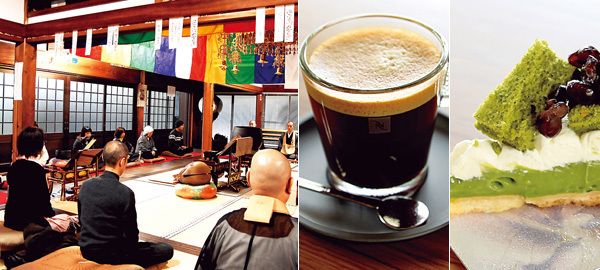 住職いわく「一般の方が寺院に親しみを持っていただく手段として」始まったお寺カフェは2016年で8年目。毎月2日間だけ土日を通して行われる。寺限定のタルト、ロールケーキ、和菓子などが人気を集め、2日で500~600名の利用が。15時半ラストオーダーの後に座禅体験があり、つなげて利用する人も少なくない。