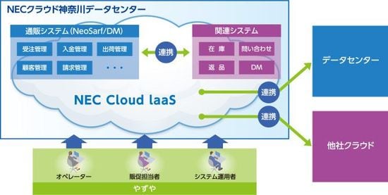 「NeoSarf/DM」を利用することで、単品通販のノウハウを盛り込むことに成功。システムは「NEC Cloud IaaS」上で構築し、高い信頼性・安定性と事業継続性を確保している。