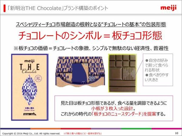 気になる新商品の企画書 #企画書 #資料 2017/03/15 9:00 #4 #5 #6 #7 #8 #9 2倍に値上げでより売れた明治の板チョコ 明治「THE Chocolate」の企画書 PRESIDENT Online 河崎 環 +フォロー コラムニスト 前ページ 1 2 3 4 5 6 明治「THE Chocolate」の企画書 世界各国と比較したチョコレート消費量の少なさの一方で、Bean to Barのようなクラフトチョコが受け入れられてブームとなることから、日本のチョコレート市場にはまだまだ大きな成長が見込めるとの仮説を立てて始まる企画書。 その成長の隙間に、明治の持つ力を総動員したスペシャリティチョコをどういう形で提案していくか、そしてどう評価されたか、開発メンバーのチョコレート愛あふれる考察の跡と旅路が見える内容となっている。 【関連記事】 揚げ物を旨くする、過熱水蒸気調理とは? ド派手でレトロにリニューアル!「資生堂パーラー」の洋菓子 世界一のコンサル×日本大手企業「課題解決の教科書」 孫正義流の事業提案書「ワンシート、ワンメッセージ」を肝に銘じよ カルビーヒットメーカーの「アイデア量産」手帳術 1 2 3 4 5 6 河崎 環(かわさき・たまき) コラムニスト 1973年、京都府生まれ。慶應義塾大学総合政策学部卒業。時事、カルチャー、政治経済、子育て・教育など多くの分野で執筆中。著書に『オタク中年女子のすすめ』『女子の生き様は顔に出る』ほか。 <この著者の他の記事> 就活論を超え、想像以上に精緻な「失われた30年」の検証…『日本の就活――新卒一括採用は「悪」なのか』 Facebook 関連記事 揚げ物を旨くする、過熱水蒸気調理とは? ド派手でレトロにリニューアル!「資生堂パーラー」の洋菓子 世界一のコンサル×日本大手企業「課題解決の教科書」 ランキング 1位 1回10分・室内でもできる…整形外科医が「姿勢も血流もよくなる」と勧める"肋骨ウォーキング"の効果【2026年1月BEST】 ランキングをもっと見る ビジネス #企画書 #資料 #Instagram #SNS #パッケージ #チョコレート #明治(Meiji)