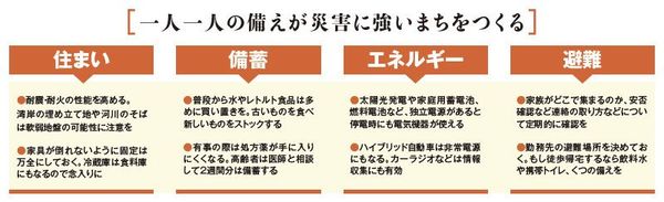 レジリエンスという言葉は東日本大震災後から使われるようになりました。被災してもギブアップせず、いかに早く元の状態に戻れるかがレジリエンスの意味。日本全体のレジリエンスを高めていくには、国土強靱化という国家単位の視点だけでは不十分。各家庭が防災への意識を高め、事前に備えていくことが重要なのです」