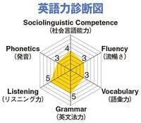 対話力を支えるのは、社会言語能力・流暢さ・語彙力・英文法力・リスニング力・発音の6項目。COCO塾の無料体験レッスンでは、インストラクターが項目別に英語力を診断し、その診断結果と面談の内容をもとに、カウンセラーが最適なレッスンプランを提案する。