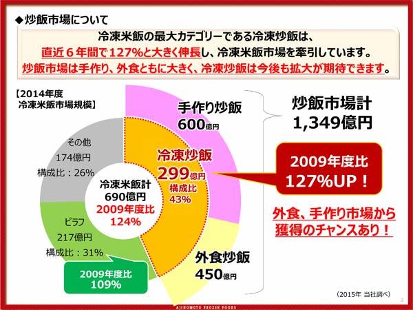 味の素冷凍食品には、発売から39年というロングセラー冷凍チャーハン「具だくさん五目炒飯」がある。人気商品ではあるが、冷凍チャーハン市場において、長く2位の座に甘んじており、1位との間には大きな差があった。拡大する冷凍チャーハン市場において、さらなる売上げを確保するためにも、新製品の投入は急務だった。