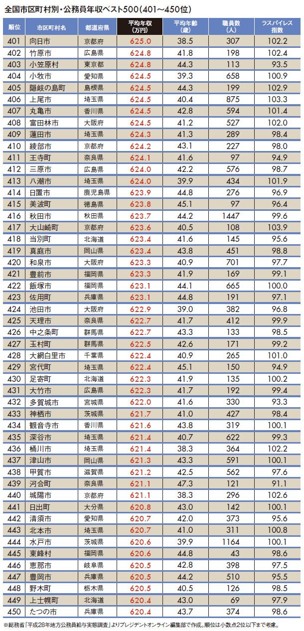 2017公務員給与ランキング #公務員 #年収・給料 2017/06/01 9:00 #1 #2 #3 "地方公務員年収ランキング"トップ500 「トップ3」を九州の自治体が独占 PRESIDENT Online プレジデントオンライン編集部 +フォロー 前ページ 1 … 7 8 9 10 11 次ページ 次ページ 1 … 7 8 9 10 11 関連記事 "地方公務員年収ランキング"ワースト500 「学歴別」平均年収ランキング 「クビになりやすい業種・会社」ランキング100 ランキング 1位 1回10分・室内でもできる…整形外科医が「姿勢も血流もよくなる」と勧める"肋骨ウォーキング"の効果【2026年1月BEST】 ランキングをもっと見る マネー #公務員 #年収・給料